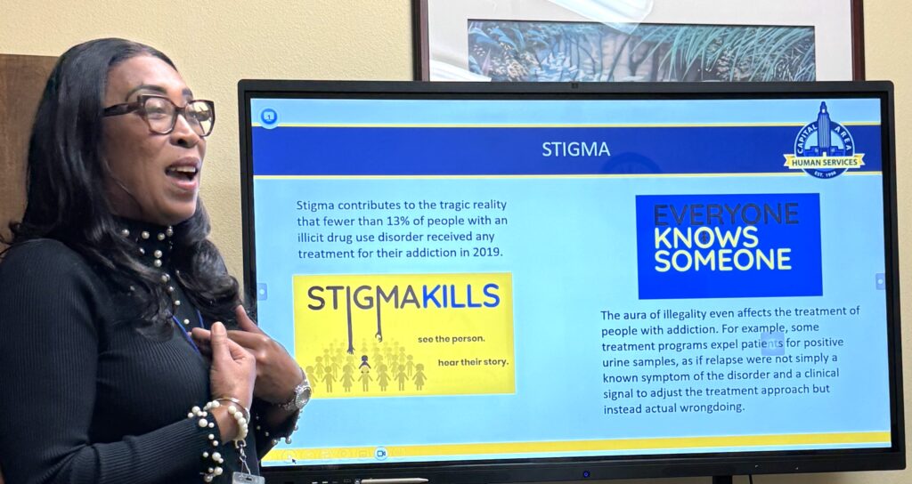 CAHS Prevention Coordinators Ricki Davis-Robinson, PSIT, and Alicia Richbourg, PSIT, joined Social Service Counselor Rosalyn Davis, PLPC, CCGC, CAC, in conducting a Narcan training, Dec. 2, for employees of Families Helping Families of Greater Baton Rouge.